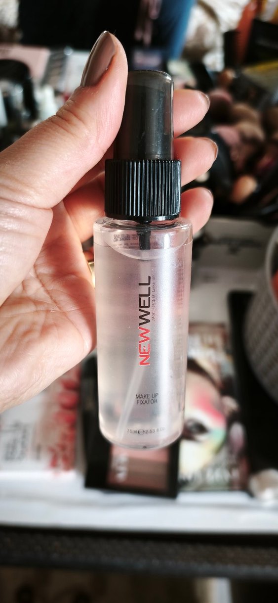 New Well markasına ait, siyah sprey başlıklı şeffaf şişede makyaj sabitleyici sprey. Makyajın kalıcılığını artırır. ORJİNAL SİFİR URUN