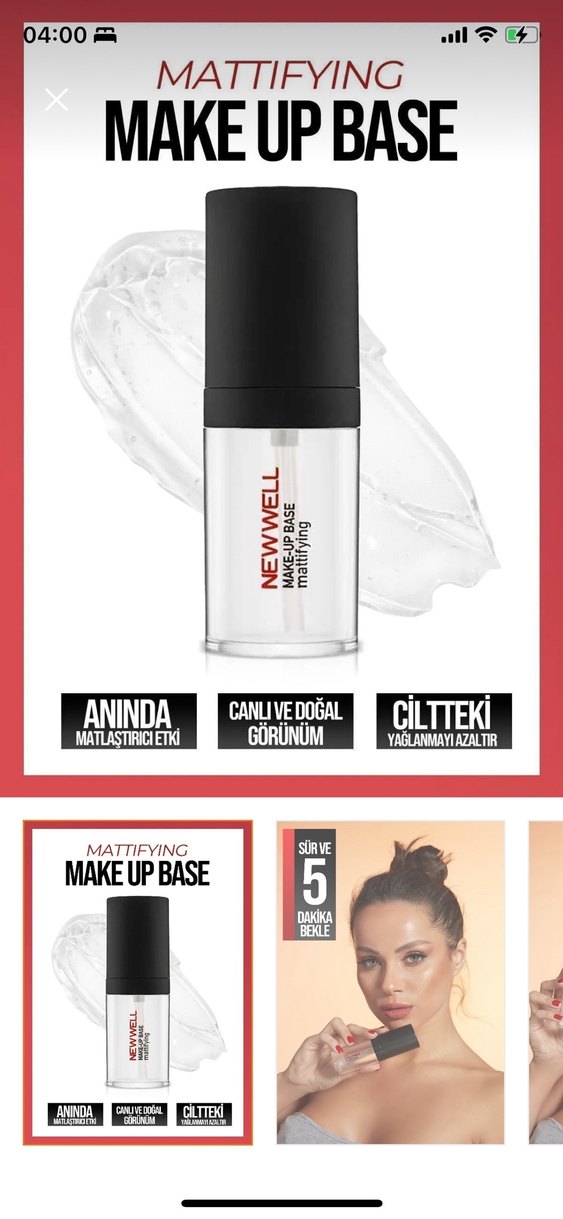 New Well matlaştırıcı makyaj bazı, ciltteki yağlanmayı azaltır ve anında canlı, doğal görünüm sağlar. Uygulayıp 5 dakika bekleyin. Yapısı kadife gibi gözenekleri blurluyor bir defa kullandım elimde cok fazla makyaj bazı oldugu icin kullanamıyorum