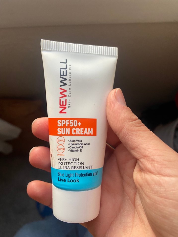 NEW WELL SPF50+ güneş kremi, aloe vera, hyaluronik asit, kanola yağı ve E vitamini ile çok yüksek koruma sağlar. Ultra dayanıklı ve mavi ışık koruması sunar.