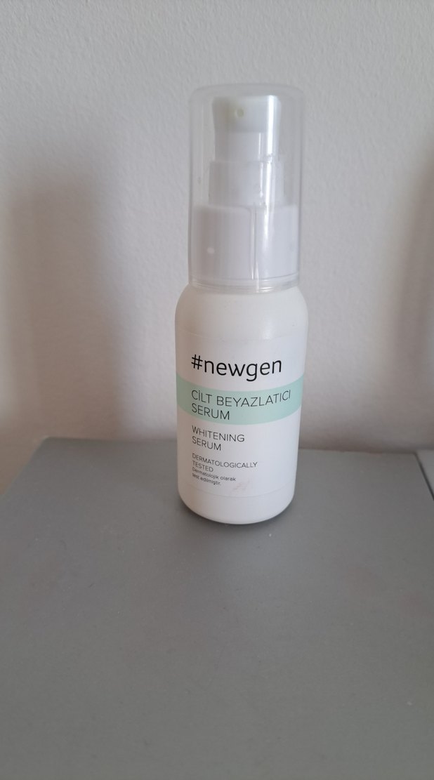#newgen markasına ait cilt beyazlatıcı serum, dermatolojik olarak test edilmiştir ve cilt tonunu açmaya yardımcı olur. Yeni açtım (kasım 2025)