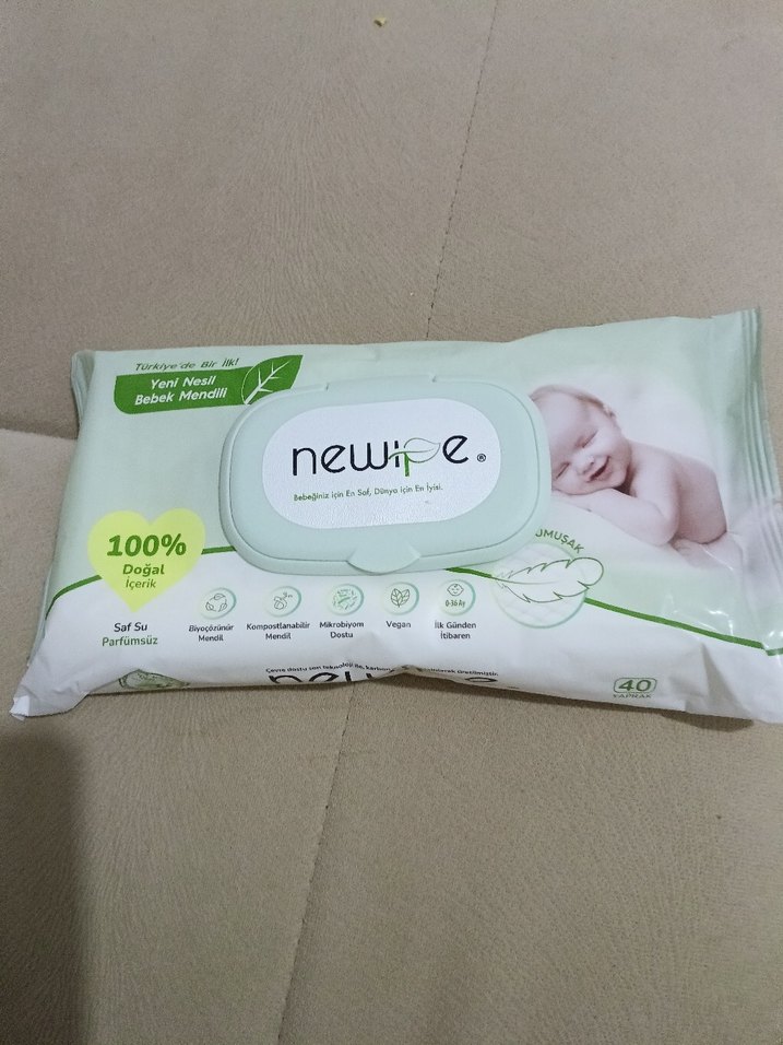 Newipe bebek ıslak mendil, %100 doğal içerik ve saf su ile hazırlanmıştır. 40 adetlik pakette, hassas bebek cildi için uygundur.