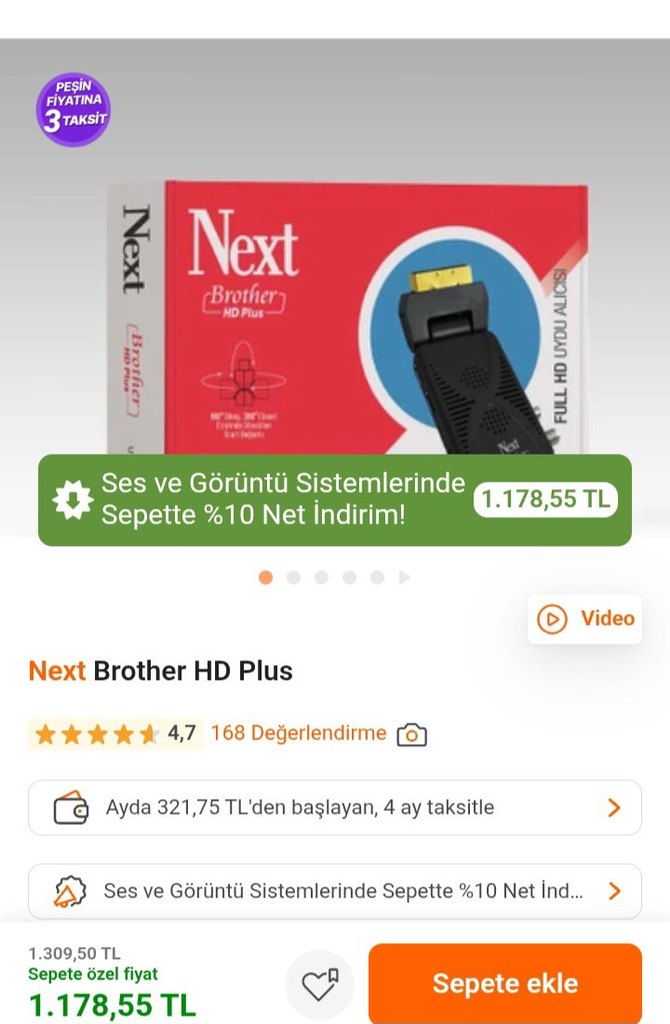 Next Brother HD Plus, ses ve görüntü sistemleriniz için geliştirilmiş yüksek tanımlı çıkış sunar. Sepette %10 indirimle satışta.
