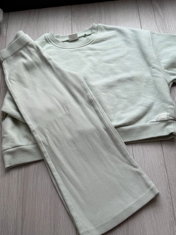 Kızlar için bol kesim, uzun kollu ve bisiklet yaka takımdır. Yumuşak keten kumaştan, pastel gri renkte ve desensizdir, trend ve rahat bir görünüm sunar. Son resmdeki gibi rengi yeşil çok tatlı kullanışlı bir kaç kez giyildi