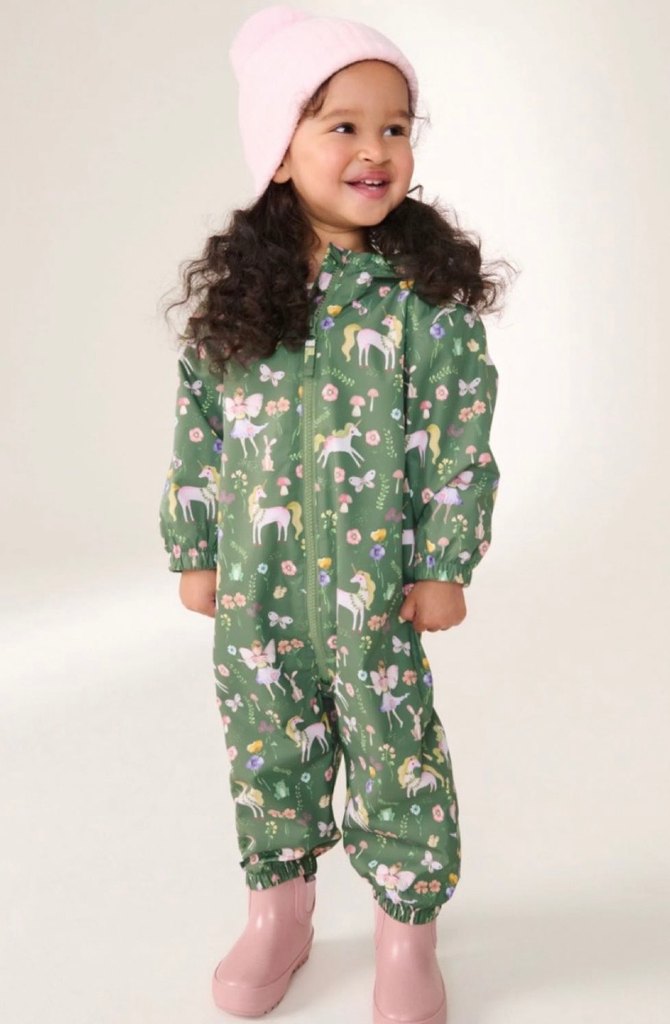 2-3 yaş NeXT Yeşil renkli kız çocuk yağmur tulumu, kapüşonlu ve fermuarlı olup, desenli yapısıyla dikkat çeker. Lastikli kollar rahat kullanım sağlar.2 ve üzeri satın alımlarda indirim uygulanır