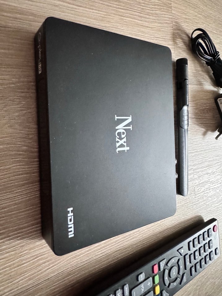 HDMI çıkışlı Next uydu alıcısı, uzaktan kumanda ve anten ile sinyal alımı sağlar. İpt tv ve uydu alıcısı bır arada . kompakt ve işlevsel cihaz. Androit box özellıklı. düz tvnize app yukleme olanagı saglar . 4 ay kullandım sadece apple tv aldıgım ıcın