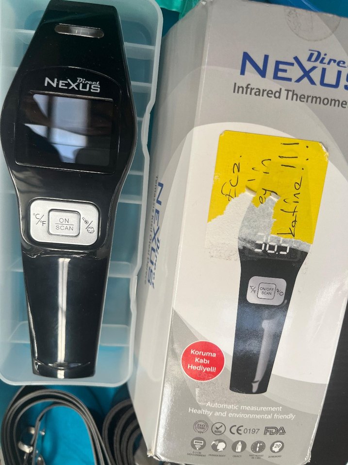 NEXUS kızılötesi temassız ateş ölçer, otomatik ve kolay kullanım sağlar. Koruma kabı hediyelidir. Sadece deneme amaçlı kullanılmıştır. Sıfırdır herhangi bir sorunu yoktur.