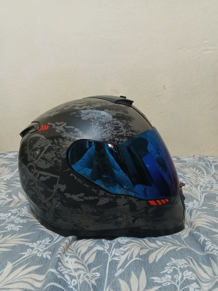 Nexx Desenli Siyah Motosiklet Kaskı, Tokalı