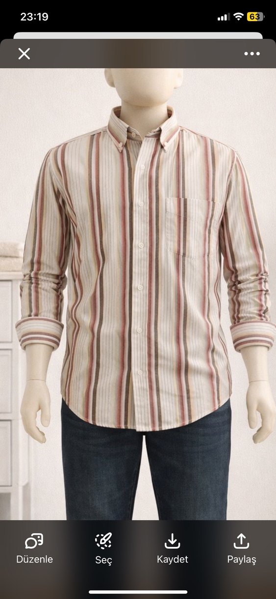 Neyir Çizgili Bej Erkek Gömlek. S beden