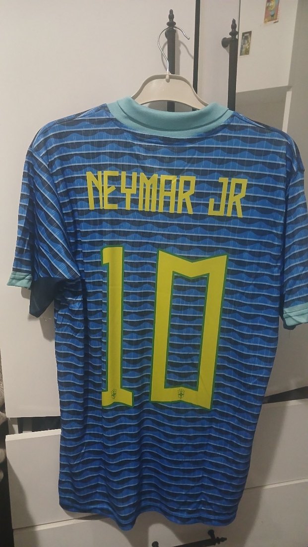 Neymar Jr Brezilya Forma M beden Suni kumaştan, baskılı Neymar Jr ve 10 numara detaylı, kısa kollu, mavi ve vücuda oturan erkek forma. Velcro detaylı. ⚽