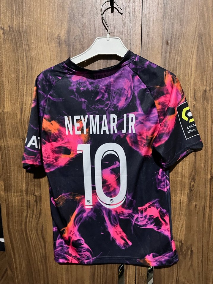 Mor bağlamalı desenli, kısa kollu ve bisiklet yaka spor formasıdır. Neymar Jr. ismi ve Velcro detayları bulunur. Spor ve sokak stili için uygundur. ⚽