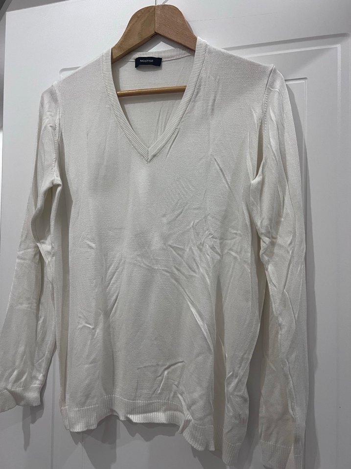 Ng style V Yaka Beyaz Uzun Kollu Kadın triko Kazak