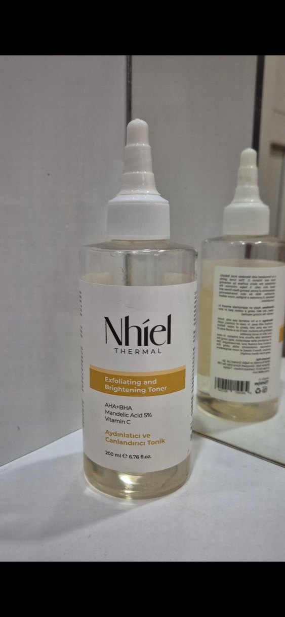 Nhiel Thermal AHA+BHA içeren, 5% Mandelik Asit ve C vitamı ile cildi canlandıran ve aydınlatan tonik.
