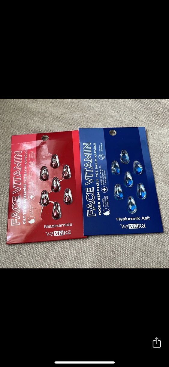 Niacinamide ve hyaluronik asit içeren weMaRa yüz vitamin maskeleri, cilt bakım ve yenilenme sağlar.