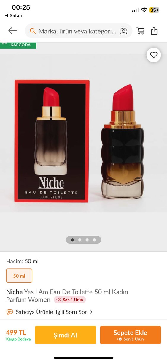 Niche Yes I Am Kadın Eau De Toilette, 50 ml, ruj şeklinde şık ve özgün tasarıma sahip parfüm. niche yes i am parfum bir kere kullanildi onun disinda hic kullanilmadi daha yeni alindi urunun hepsi duruyor sectigim marka temsili hicbir sorunu yok