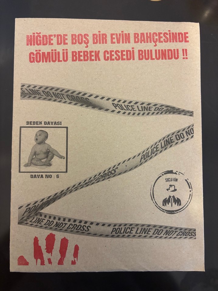 Niğde'de boş bir evin bahçesinde gömülü bebek cesedi bulunan dava kitabı, polis şeridi ve olay yeri detayları içerir.