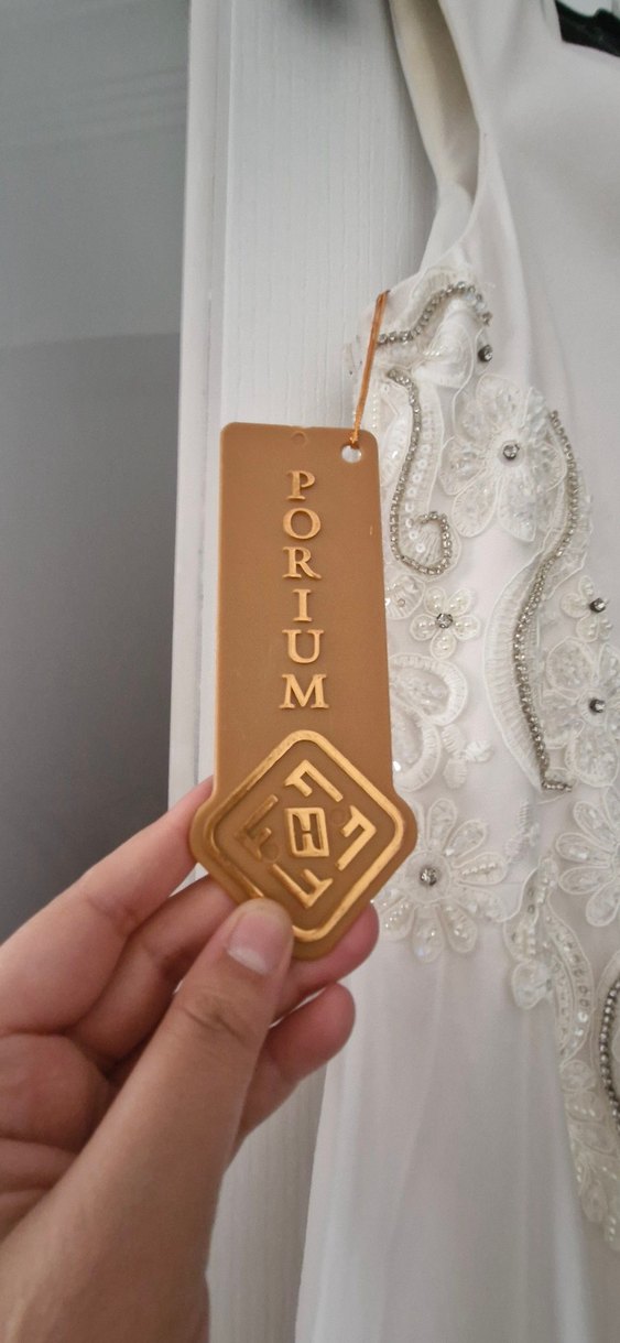 1 kez giyildi 42 beden fakat dar kalip sutyensiz kullanabileceginiz bir elbise hicbir yerinde deforme yoktur.fermuar kismi yan taraftandir arkadan tul kuyrugu vardir.