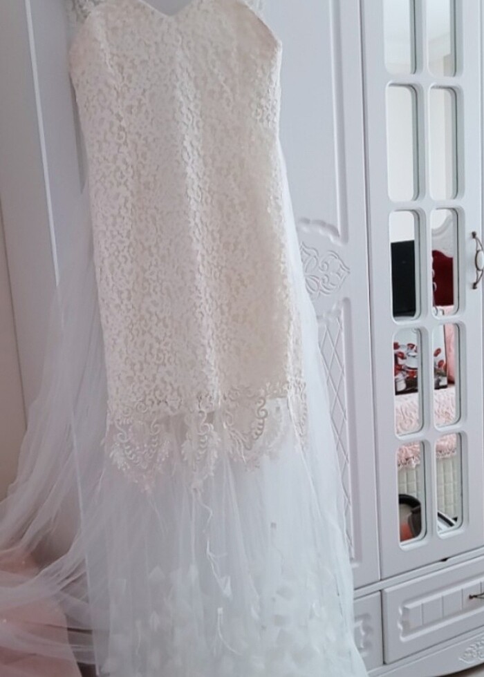 Nikah elbisesi 1 satt giyildi 44 46 bedendir etekleri temizdir 8 cm topuklu ayakkabıyla giyildi 1.55 boy 80 kiloda giyildi tüldür