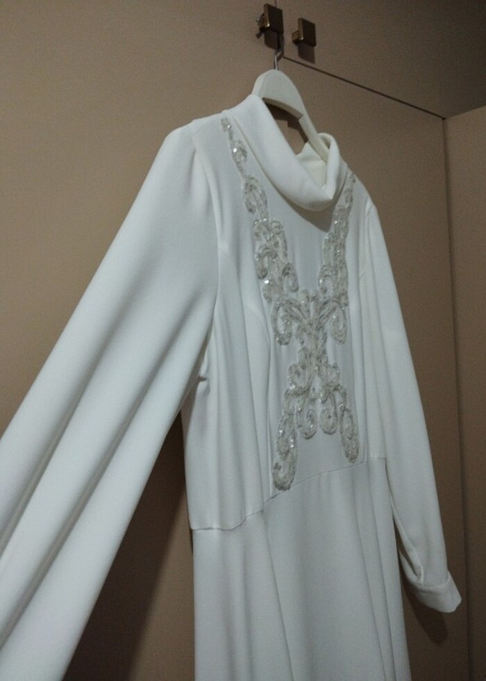 Özel dikim. Çok şık bir kere giyildi. Krep kumaş 46 bedene olur butik tarz duvak eşarp gönderimi yapılacaktır.