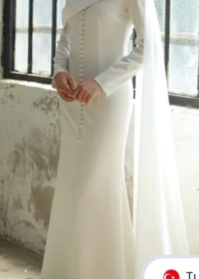 Tesettür nikah elbisesi. 1 kere giyildi kurutemizleme yapıldı. Özel tasarımdır. 38-40-42 beden uyumludur İade kabul edilmez