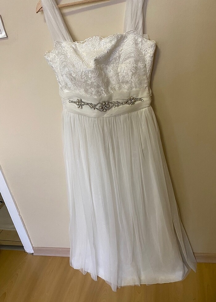 Nikah elbisesi L beden sırtı ipli özel dikim 1.60 boya 62 kiloda kullanıldı 65 kiloya kadar olur kullanıma engel bir kusuru bulunmuyor görüldüğü gibidir