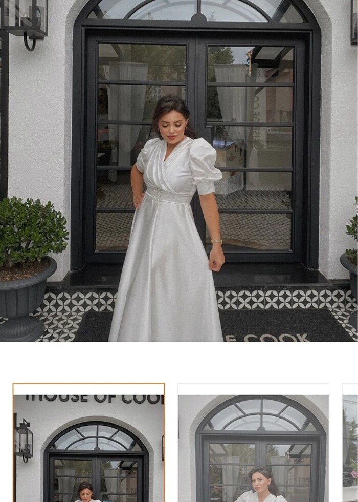 BETTY&SAM Saten beyaz elbise.Nikahımda giydim 1 saatlik.çok güzel çok hoş bi elbise.beğenerek kullandım herkes çok beğendi yani gayet özel gün için tercih edilebilecek bi elbise .38-40 arası bedenim tam oldu zorluk yaşamadım