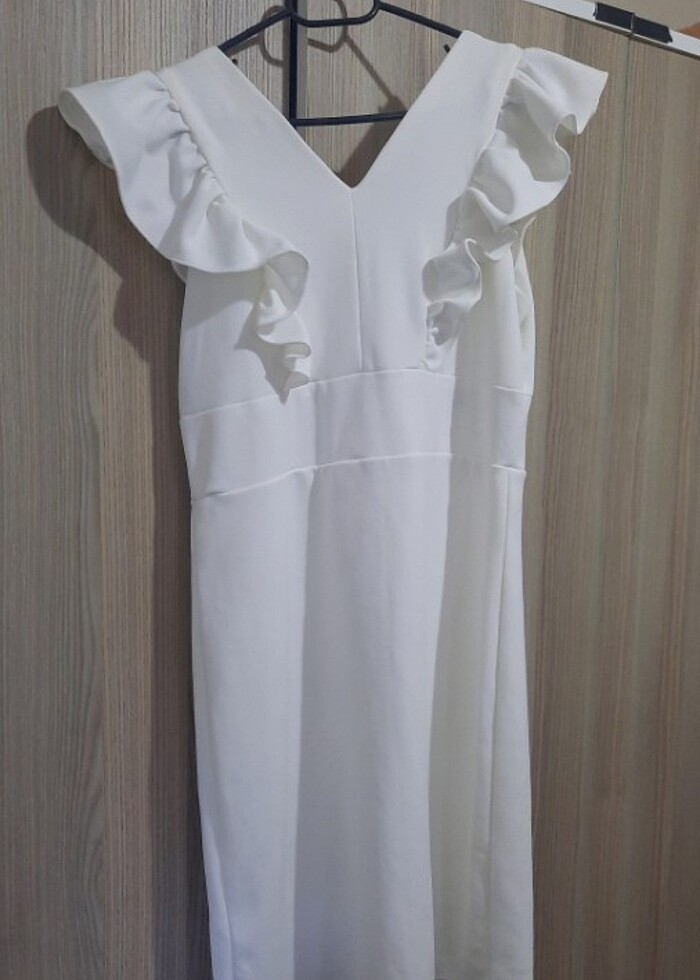 1 kez nikah merasiminde giyinildi tam beden sırtı v şeklinde Hafif dekolteli içi göstermez astarlı diz üstü elbise