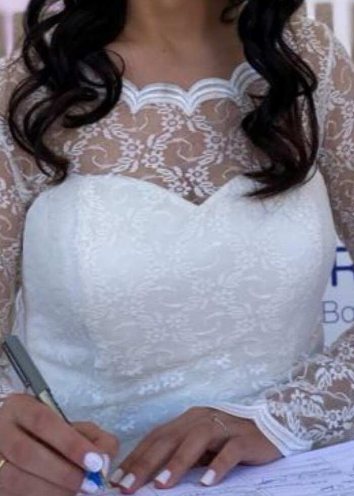 Nikahımda giyindim. Kolları ve dantelleri çok zarif güzel bir elbise