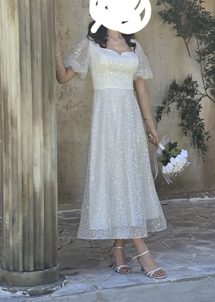 1 kere nikahımda giydim 36 bedenden daraltılarak 34 bedene düşürüldü 1.68 boy 50 kilo göğüs 82 bel 60 belden oturmalı pul ve inci detaylı çok rahat bir elbise