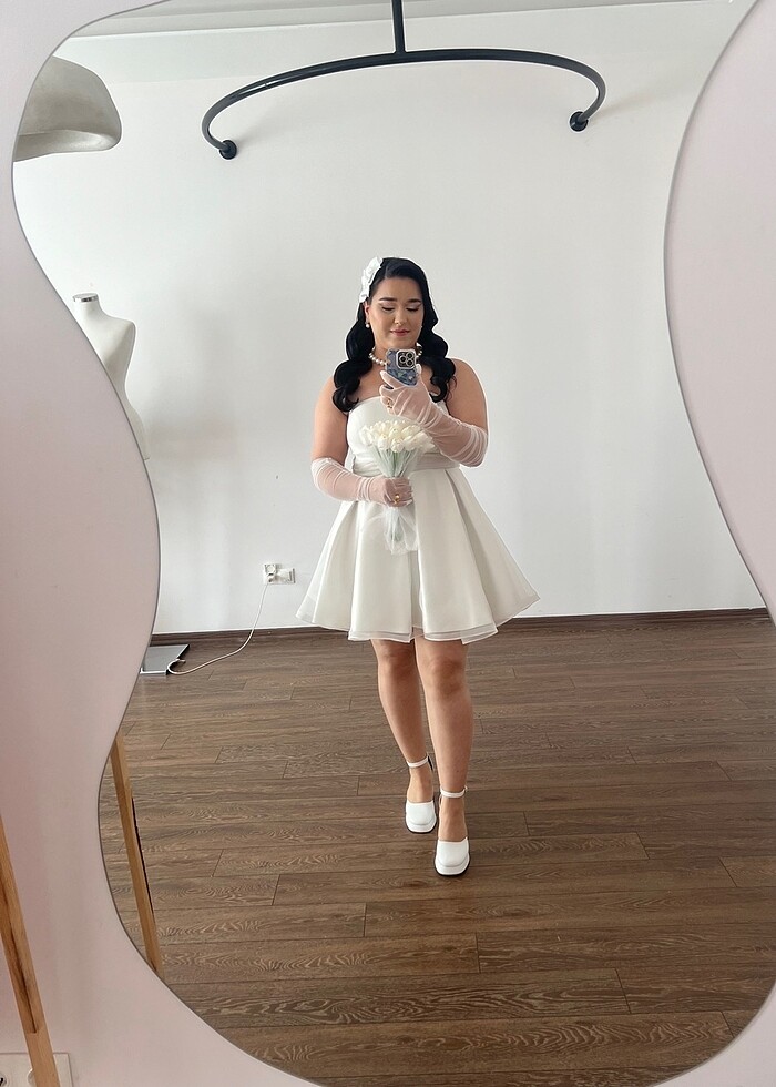 Nikah elbisemi nikahımda ve bir kaç gün öncesi bride partimde giydim elbisem özel dikim bedeni L- XL uygundur tül kolları var bride partimde kullandım en son fotoğraflarda mevcut nikahımda eldiven kullanmayı tercih ettim elbisem çok rahattı rahatsız etmedi beni kuru temizlemesi yapıldı ilgilenenler mesaj atabilirler. Ayrıca nikahımda kullanmış olduğum toka sade nikahta tercih ettim dilerseniz alıcı isterse eğer tokamı da hediye edeceğim.