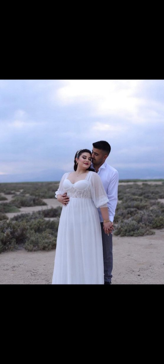 Uzun beyaz gelinlik bol kesim 1 kere giydim nikah ve dış çekim aynı gün oldu onundeki gupur dantelli taşlı kısmı gelinlikçiye yaptırdım orası yoktu çok açıktı