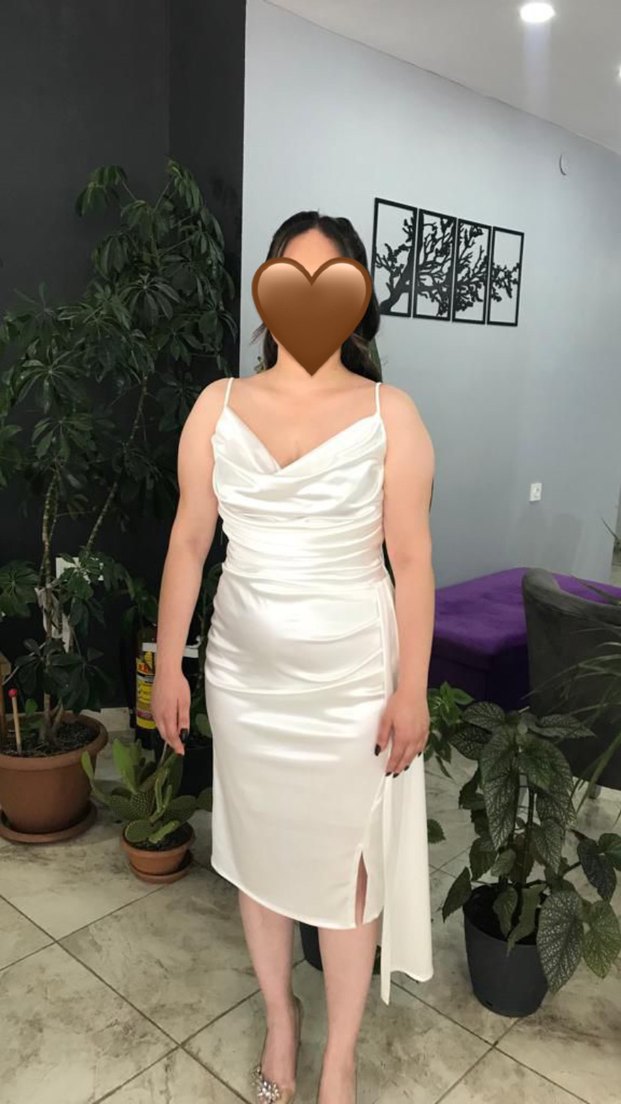 Nikahımda giydim sadece 2 saat kadar L beden boyum 1.58 Burdayken kilom 50 ydi