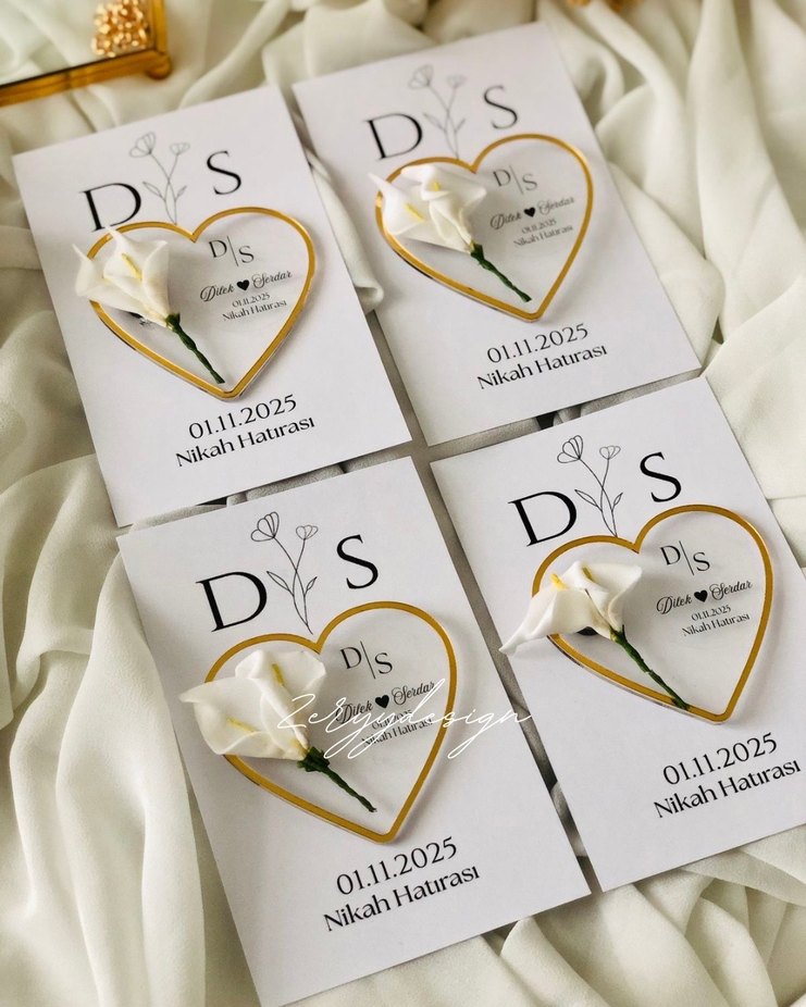 Nikah Hatırası Beyaz Çiçekli Kartlar