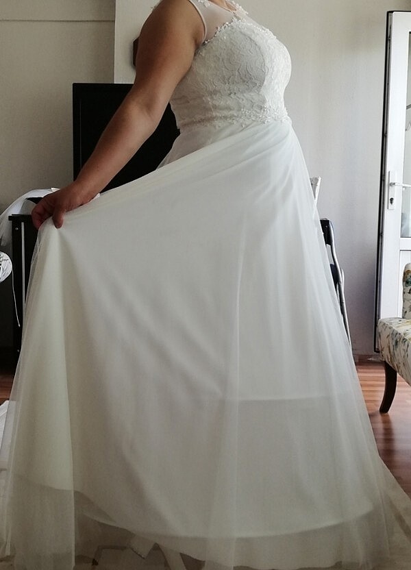 Nikah için abiye 44. 46 bedene uyumlu krem rengi