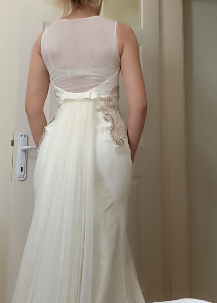 Ürün nikah elbisesi olarak alındı kullanılmadı kaliteli,nikahlarda hatta gelinlik olarak kullanılabilecek balık model alt etek ucu özel dikim asla ayak altına girmez çok rahat ürün