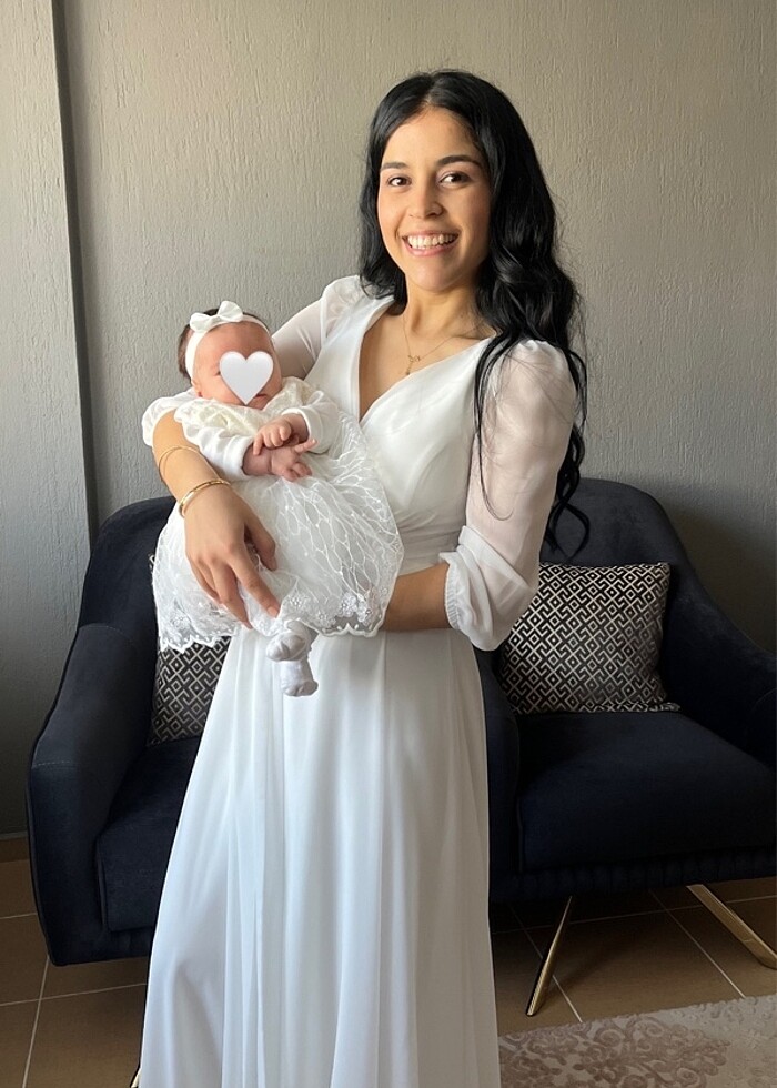 Sadece kızımın Mevlüt’ünde giydim, evde giydiğim için hiçbir leke yırtık vs yoktur. 1,64 boy-57 kilo görselde ki gibi duruyor 36-38 bedene rahatlıkla olur, göğüsünüz çok iri değilse 40 bedene bile olur çok esnek şifon kumaştır