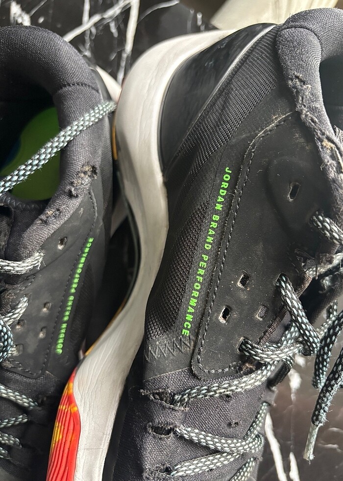 Ürün kozmetik olarak iyi durumdadır. Resimde görünen yerler dışında problem yok. Tabanı sağlamdır. Resimdeki boğaz kısmında ufak bir sökük var. Abartılı Yırtık vs yok.