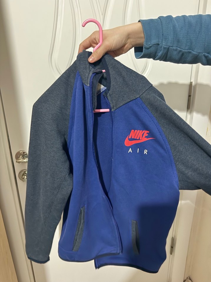 Erkekler için fermuarlı, uzun kollu ve notlu yakalı, mavi ve gri yumuşak kumaştan Nike Air baskılı spor sweatshirt. Rahat athleisure tarzı için uygun. ♂️