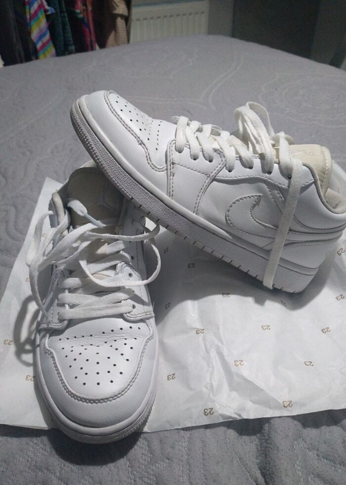 Max 1,5 hafta giydim dolapta bekliodu önceden aldim ürünün detayları fotoğraflarda içindeki tiftiklenme benle kaynaklı deil air jordan 1 low lakin hepsinde var internet fiyati 8000 bindir ben ondeceden aldığım için bu fiyata satıyorum pazarlık vardır
