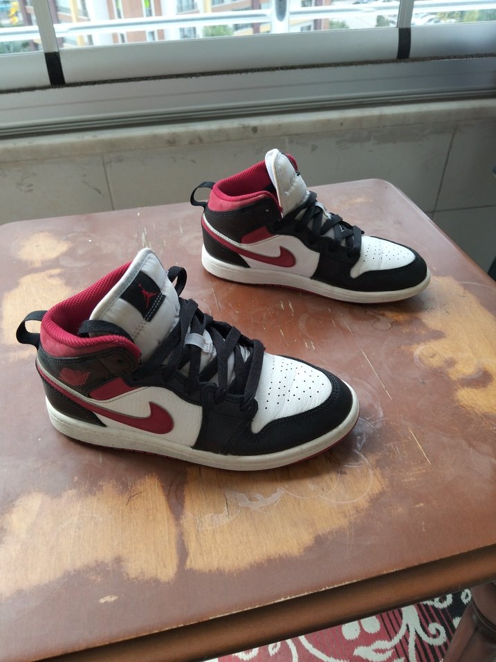 ORJİNALDİR. YIRTIK SÖKÜK YOKTUR. 33 buçuk numaradır. #nike çocuk #nike kadın #voleybol #spor #basketbol Bağcıklı, beyaz, siyah ve kırmızı renklerde baskılı desenli basketbol ayakkabısı, kauçuk tabanlıdır ve sportif sokak tarzı için uygundur.