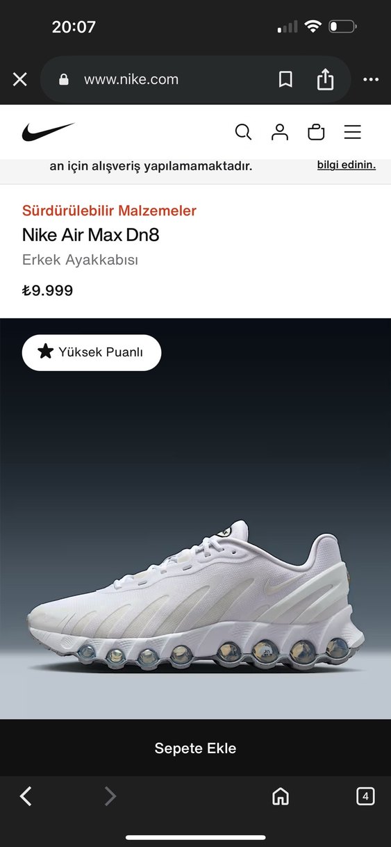 Sürdürülebilir malzemelerden üretilmiş, şeffaf tabanlı beyaz Nike Air Max Dn8 sıfır kutulu 37,5 no