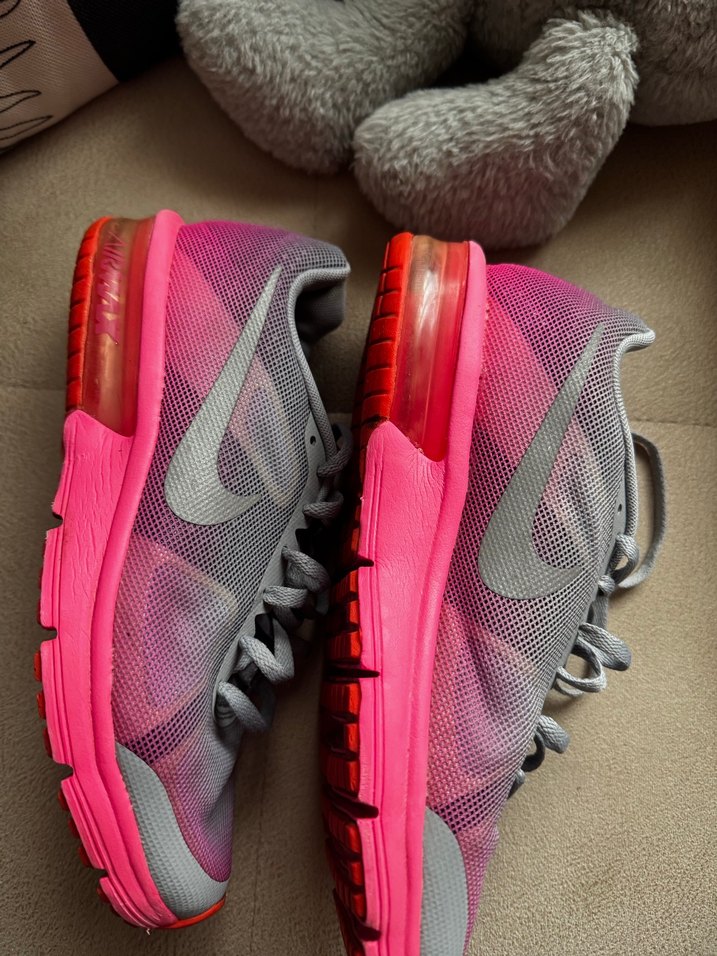 Pembe ve gri tie-dye desenli, bağcıklı yüksek topuklu kauçuk tabanlı spor ayakkabılar, sokak modası için uygun.