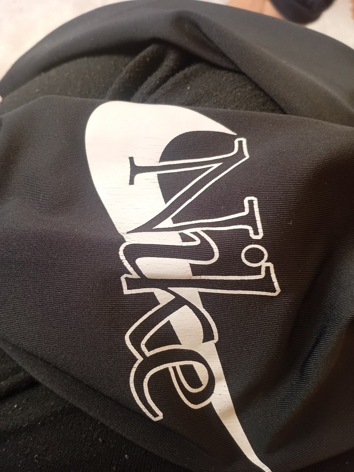 Beyaz Nike baskılı siyah fırın eldiveni, mutfakta ısı koruması sağlar.