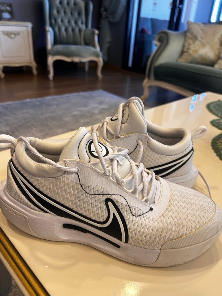 Nike Beyaz Bagcıklı Basketbol ayakkabısı, kauçuk tabanlı, spor ve sokak stili için uygundur. Rahat ve trend görünümlü. 40.5 beden
