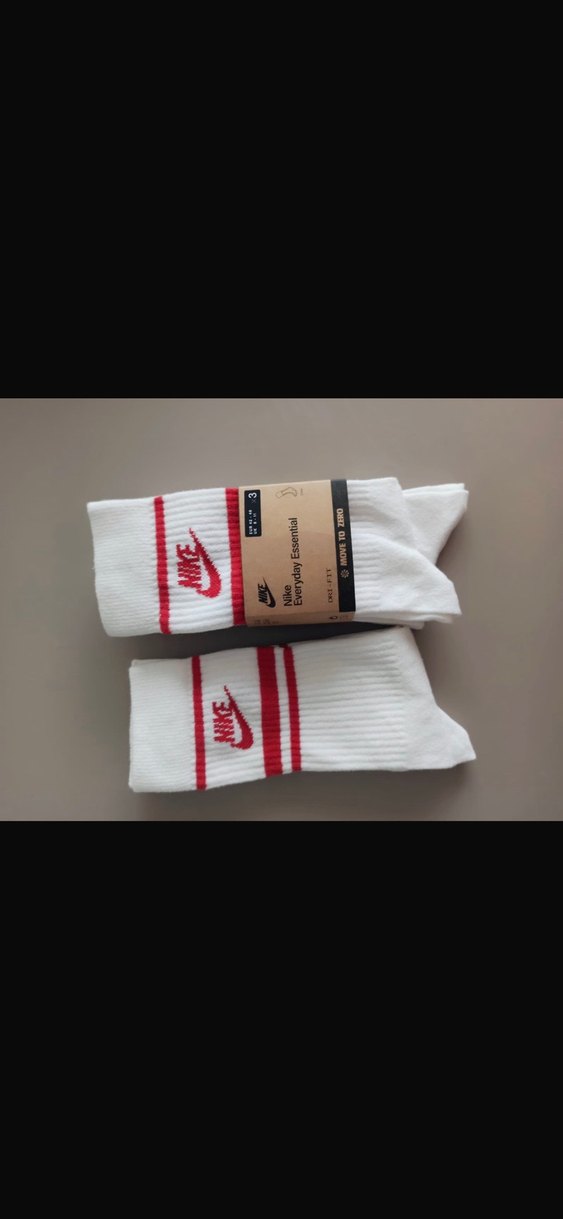 Baskılı kırmızı Nike logosu ve çizgileri olan beyaz, rahat midi boy erkek çorabı.