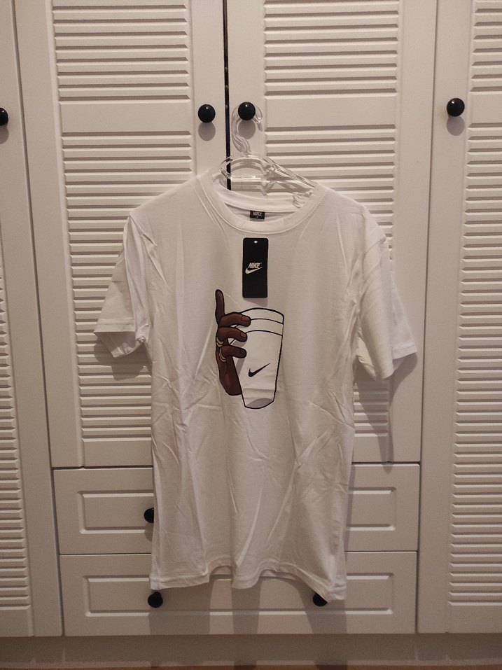 Nike marka, kısa kollu, yuvarlak yakalı ve bol kesim erkek tişört. İpek gibi kumaştan, baskılı el ve bardak deseniyle rahat ve şık bir günlük sokak stili sunar. (Ürün pakette katlı şekilde durduğu için kırışık çıkmıştır. ürünü ütülemek istemedik alan kişi ütüleyerek kullanabilir.)