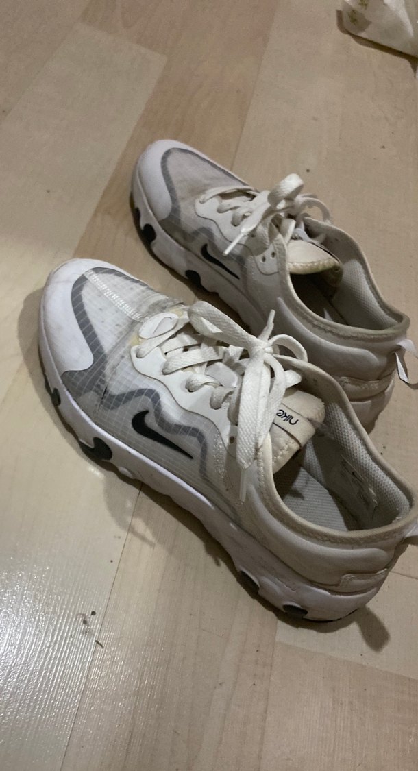 Nike Beyaz elastik bağcıklı, stiletto topuklu kadın spor ayakkabısı. Gri kauçuk tabanlı, şık ve rahat bir tasarım.