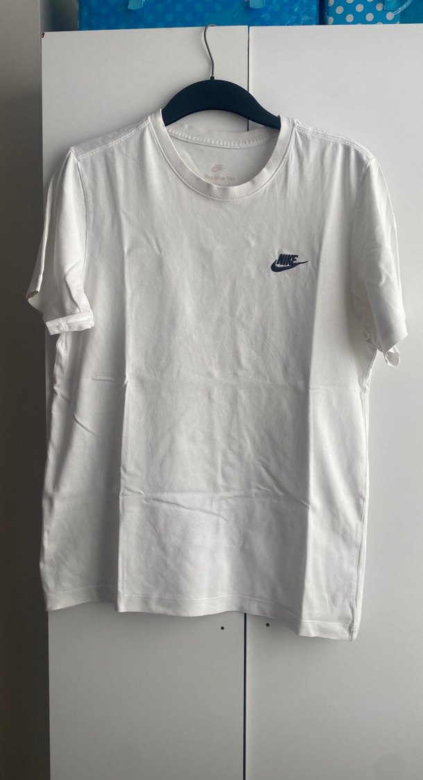 Nike erkek tişörtü, kısa kollu ve yuvarlak yakalıdır. Hafif keten kumaştan üretilmiş, sade beyaz renkte ve küçük Nike logosuna sahiptir. Günlük kullanım için uygundur.