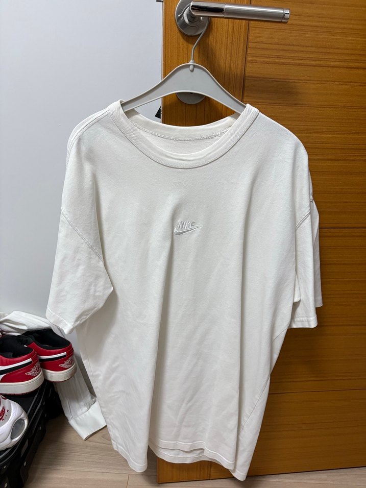 Nike beyaz erkek tişört, pamuk kumaştan, kısa kollu ve bol kesimdir. Minimalist tasarımıyla günlük rahat sokak stili için uygundur. ️