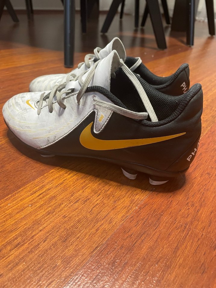 Nike marka, baskılı gri ve beyaz renkte erkek futbol ayakkabısı.gayet iyi durumda,dişleri aşınmamış,yırtığı söküğü yoktur,sadece beyaz kısımlarında hafif aşınmalar mevcut,fotolarda görüldüğü gibidir.