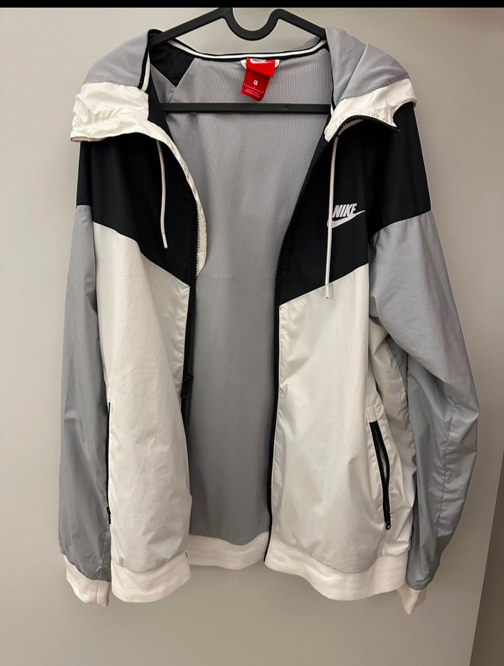 Nike markalı, kapüşonlu ve fermuarlı beyaz gri erkek spor ceket. Hiç bir deformesi yoktur inanılmaz yeni ve NİKE özel seridir ...